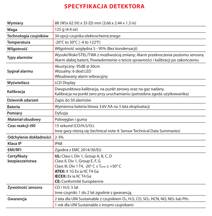 - Żywotność czujnika od 1 do 5 lat, w zależności od czujnika