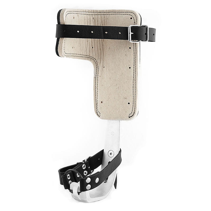 Drzewołazy aluminiowe z regulowaną wysokością miękkiej poduchy łydkowej oraz wymiennym kolcem ze stali utwardzanej cieplnie. Zestaw zawiera dwa kolce (krótki i długi).