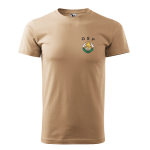 Koszulka strażacka w kolorze piaskowym, z wyhaftowanym logo OSP i napisem na plecach STRAŻ.