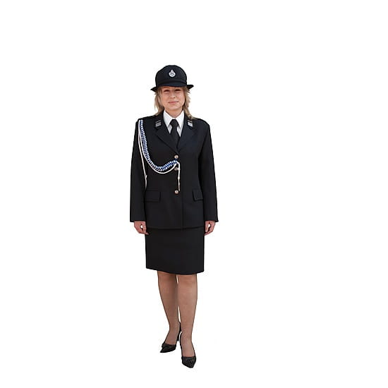 Mundur strażacki galowy, wyjściowy damski (marynarka + spódnica) produkowany jest z tkaniny gabardyna zapewniającej wysoki komfort użytkowania oraz łatwość pielęgnacji. Tkanina posiada dobrą przepuszczalność powietrza oraz dobrą odporność na wybarwianie. Kolor ciemnogranatowy, guziki oksydowane.