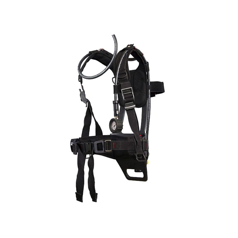 Ergonomiczny noszak, z dwoma ruchomymi uchwytami bocznymi z tworzywa samogaszącego się. Noszak wyposażony jest w trzy uchwyty służące do przenoszenia aparatu i 3 otwory do wpięcia liny asekuracyjnej o wytrzymałości do 150 kg każdy.
