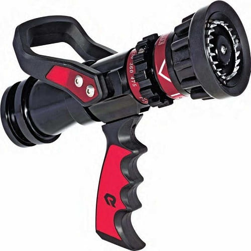 Prądownica turbo - PROJET II (równoczesny strumień zwarty + rozproszony) - Storz B/75. Zapewnia kombinację prądu zwartego i mgłowego - jednocześnie lub niezależnie. Przełącznik od prądu zwartego do mgłowego bez zamknięcia strumienia.